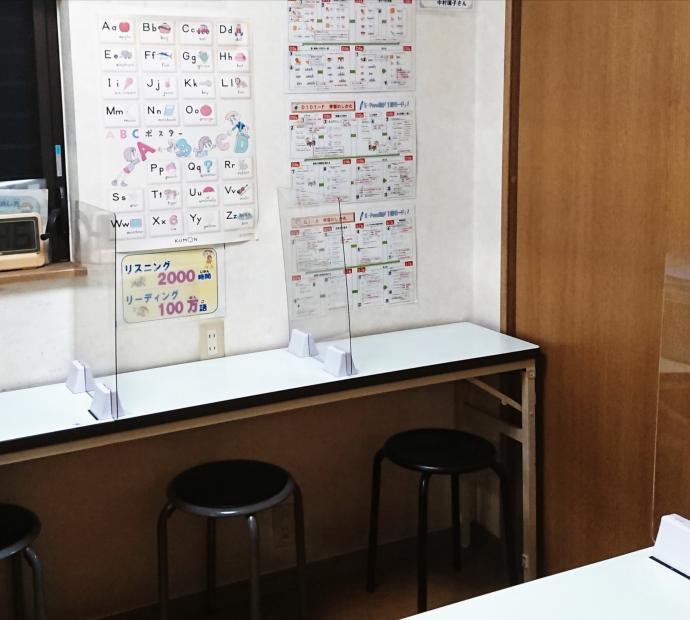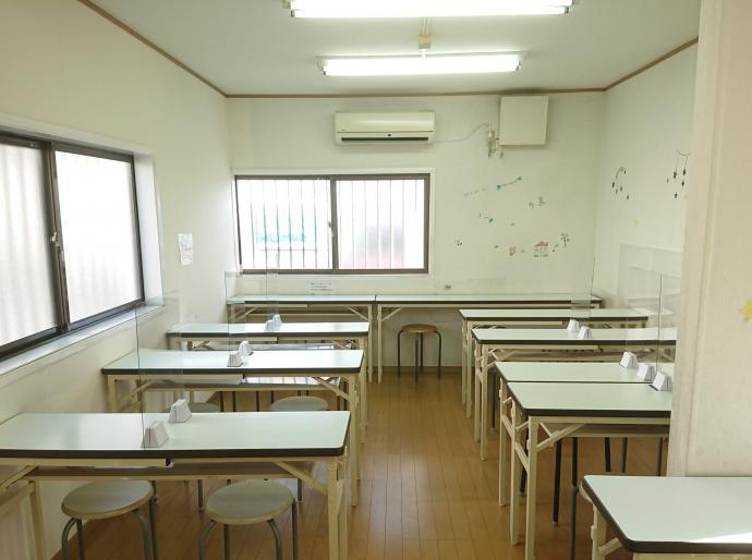 当教室では、換気・飛沫防止パネルの他、入室時の手指消毒にご協力頂いております。