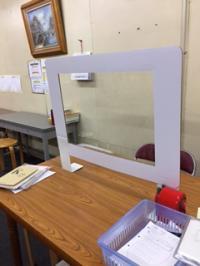 生徒さんの席間にもパーテーションを設置しています。