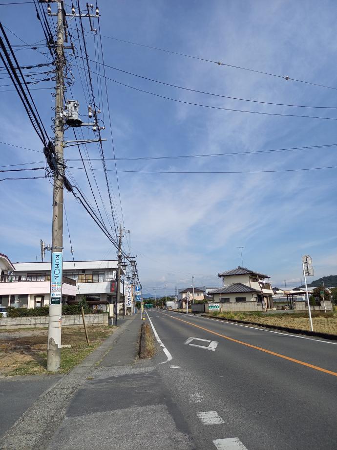 このY字路を右折20メールの右側に駐車場、左折10メールの左側が教室です。
