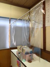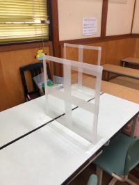教室では常時教室内の換気を行い、机・イスは生徒が入れ替わるごとに消毒をしています。