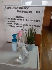 手指の消毒や換気等、感染症対策をしております。