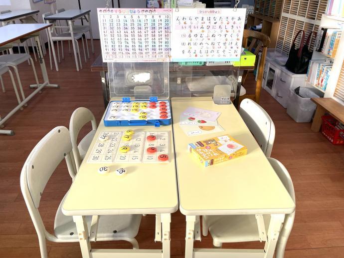 幼児さんには、足がしっかりとついて学習に集中できるように専用の机も用意しています