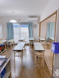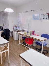 教室のドアを開けると左手に待合室、まっすぐが学習室です。