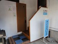シャッターのある入口から入り、右に階段を少し上がってください