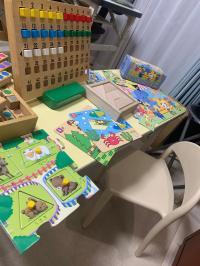 教具や絵本をそろえて、学習されているお子さんには絵本の貸し出しをしています。