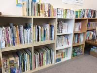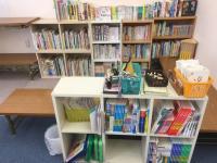 待合コーナー。お迎え待ちの間、読書などをして過ごします。