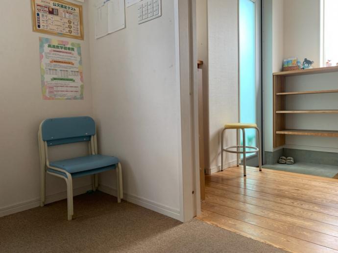 廊下はお迎え待ちスペース、荷物置き場です。学校帰りに来ていただくこともできます。
