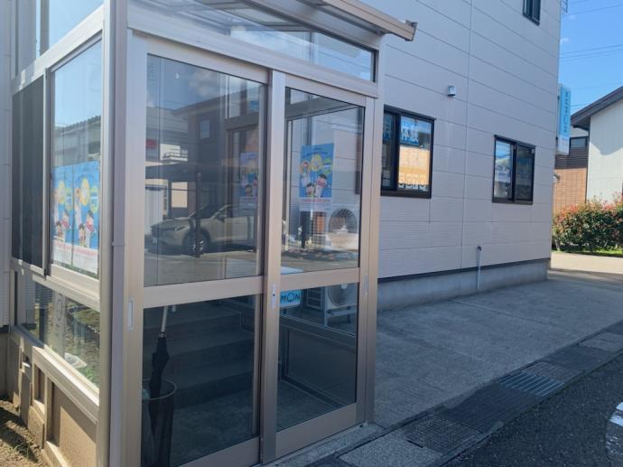 駐車スペース、駐輪スペース。広めの風除室で生徒さんはお迎えを待つこともできます。