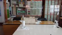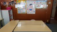 飛沫感染防止のためにパーテーションを設置し、入退室時の手指消毒も徹底しています。