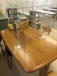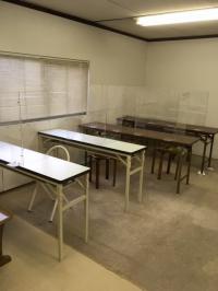 対面で指導を行う場所です。飛沫防止パネルを設置し安全に配慮しています。