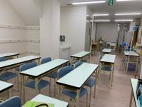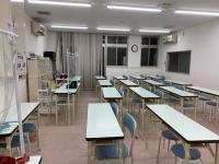 教室の入口付近です。入ってすぐに、アルコール消毒をしていただきます。