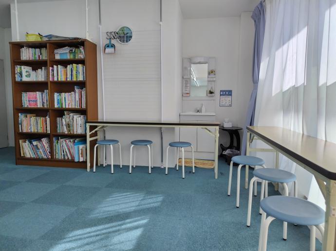 お迎えを待つ間、読書や学校の宿題などをして待つスペースです