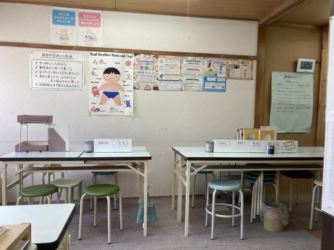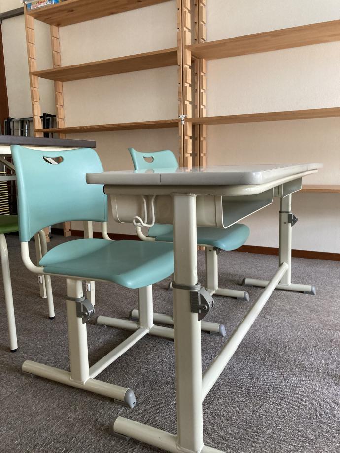 幼児席 大きな背もたれと足が床について集中学習ができます。自立までは対面学習!