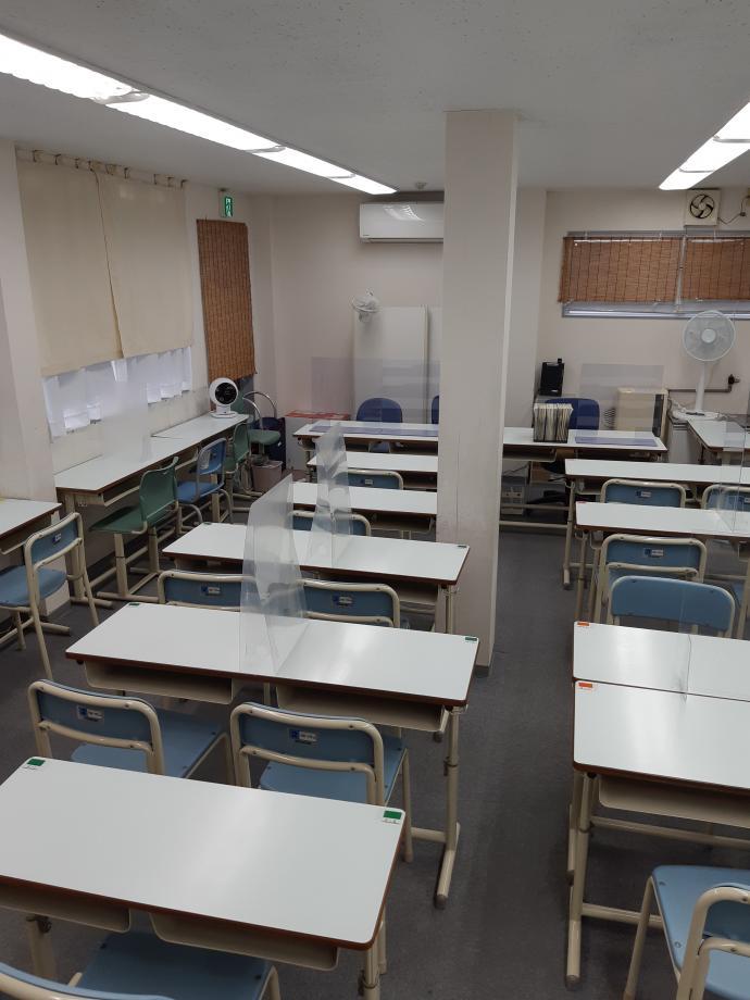 ☆教室内の感染症対策→ 生徒・スタッフ席に間仕切りパーテーション設置。入退室時に手指消毒。レンタル式空気清浄機設置。定期的に換気。
