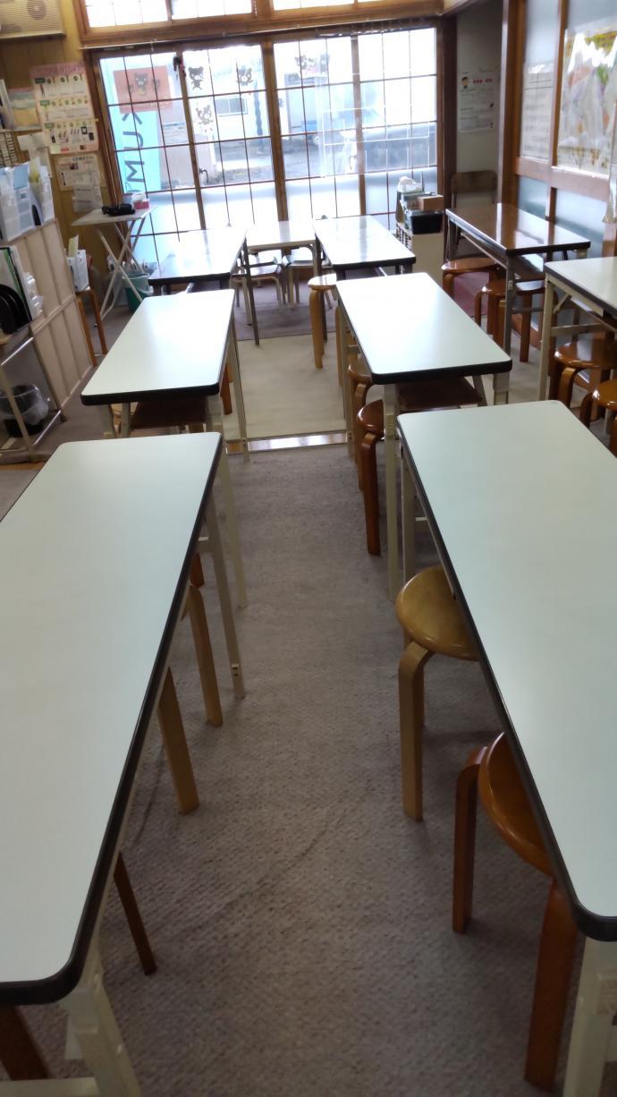 幼児さんは足の届く机で先生の前にすわります。