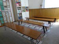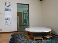 小さい方のエリア。手作りの幼児椅子で先生と一緒に学習。