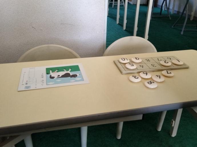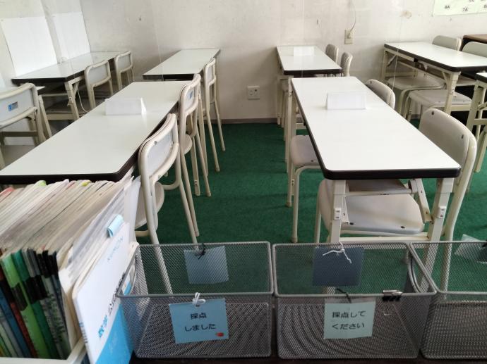 ドアを開けたら見える教室の様子です。「こんにちは」と言って入ってきます。