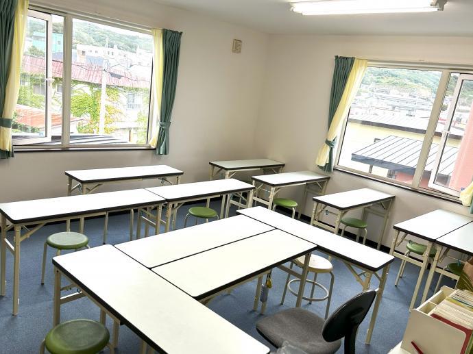 茂尻郵便局から焼肉ひょうたんの立地する坂を上っていただきますと、教室があります。