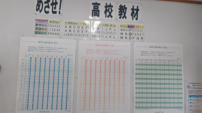 公文式の教材は童謡から始まり、高校・大学レベルまでと幅広いものです。