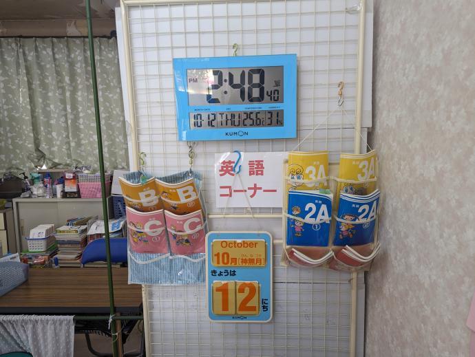 英語コーナーでは、公文の英語音声機器、Eペンシルを使って、ネイティブの音声に挑戦