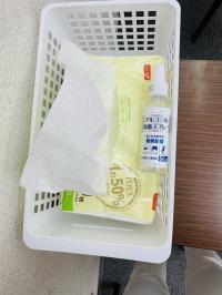 手に取る備品はアルコール消毒の後UVライトで消毒をしています。