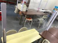 対面、音読確認席には仕切りをして安全確保につとめています。
