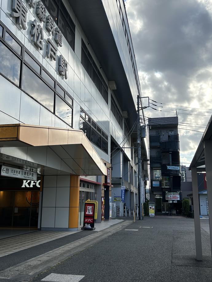 北総線東松戸駅からすぐにあり、ロータリーに面しています。