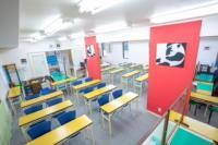 明るい北欧調の教室。入会初期はマンツーマン指導のためスタッフ席で学習します