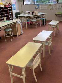 小さなお子さんの安心・安全を配慮し、身体に合う机と椅子をご用意しています。