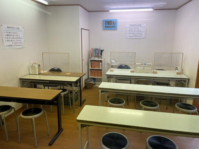 指導者・スタッフと生徒間にアクリル板設置し、感染予防を徹底しています。