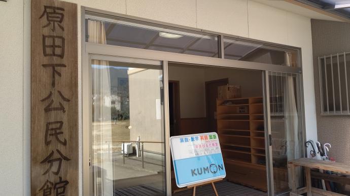 原田下公民館の一番広い部屋をお借りしています。