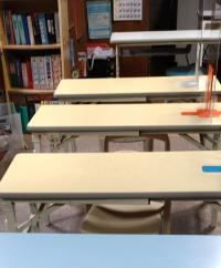 体の小さい幼児さんでもしっかりと足をつけて学習できるよう席を用意しています。