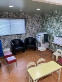 カフェのような居心地?教室奥でお待合いいただけるスペースもあります♪