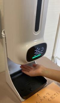 非接触型検温&消毒液ディスペンサー設置しました。小さなお子さまも安心です。