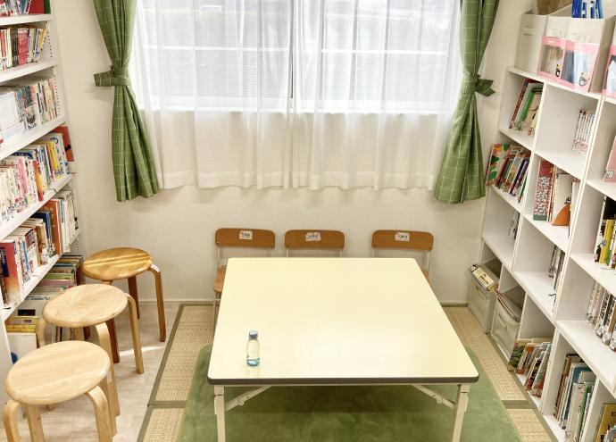 待合&図書スペース。お迎えを待つ間も静かに読書や宿題をしています。
