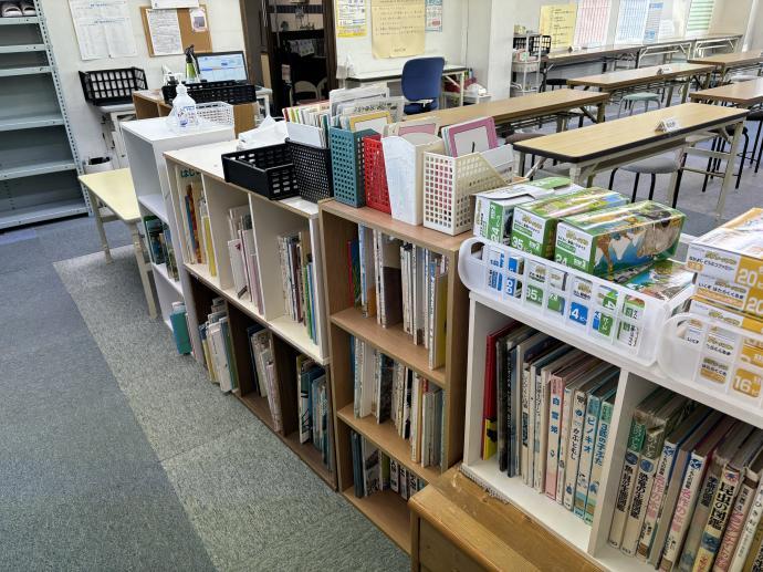 図書コーナー。学習終わりに本を読んだり、パズルに夢中になっている子も。