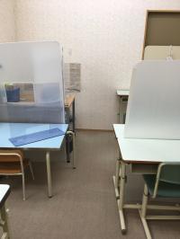 感染症対策で、パーテーションの設置、マスク着用、消毒をしております。