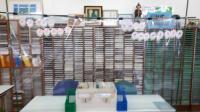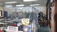 スタッフ席をビニールでしきっています。