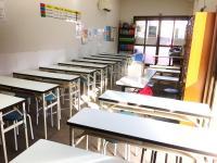 【学習スペース】広くて、明るい教室です。机やいすは定期的に消毒しています。