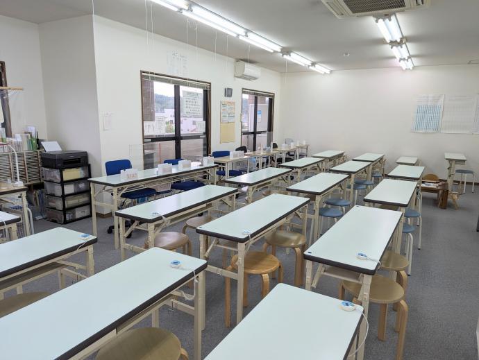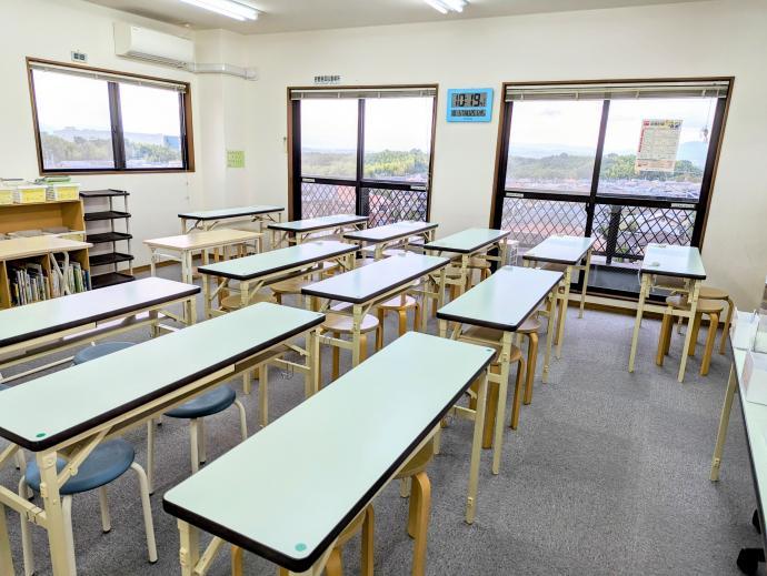 ビル4階で見晴らしの良い明るい教室です。諏方ケ原公園、松井ケ丘小学校が見えます。