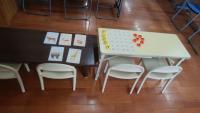 教室では 幼児から中学生が学習中です。幼児の学習では、初めて鉛筆を持って線を引くことから始めます。算数は絵を見て数をかぞえ、国語は絵を見て名前を覚えることから始めます。同時にパズル・カード・数字盤を使い、楽しく学ぶことを大切にしています。