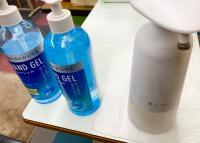 生徒たちは入室時に、消毒をしてから学習をスタートします。