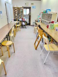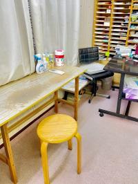 小さいお子様は専用椅子で学習します。スタッフが隣についているので安心です。