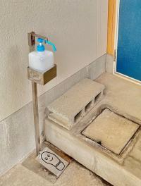 北側に教室の入り口があります。感染症対策もしておりますので安心してご来室ください
