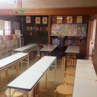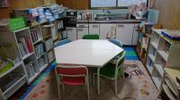 教室玄関。学習後は、ここで宿題をして、お迎えを待ちます。