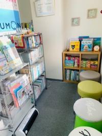 ●待合スペースです。学習の様子を本棚越しにご覧いただけます。