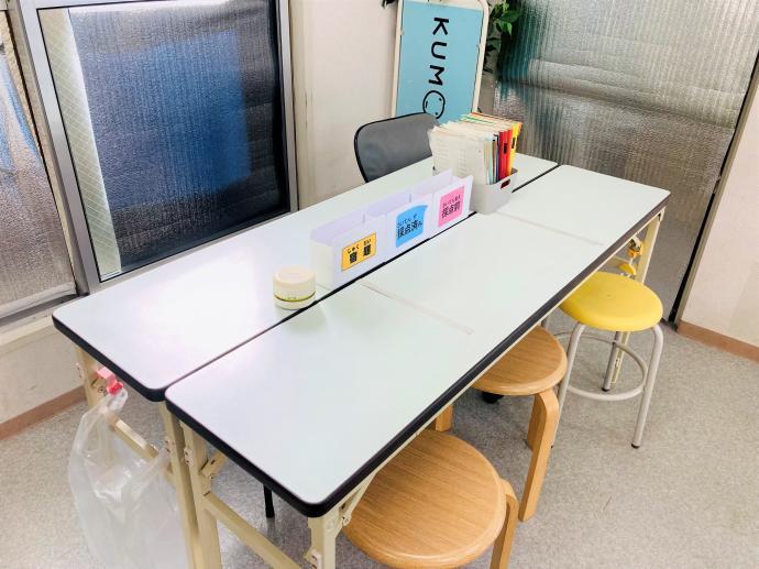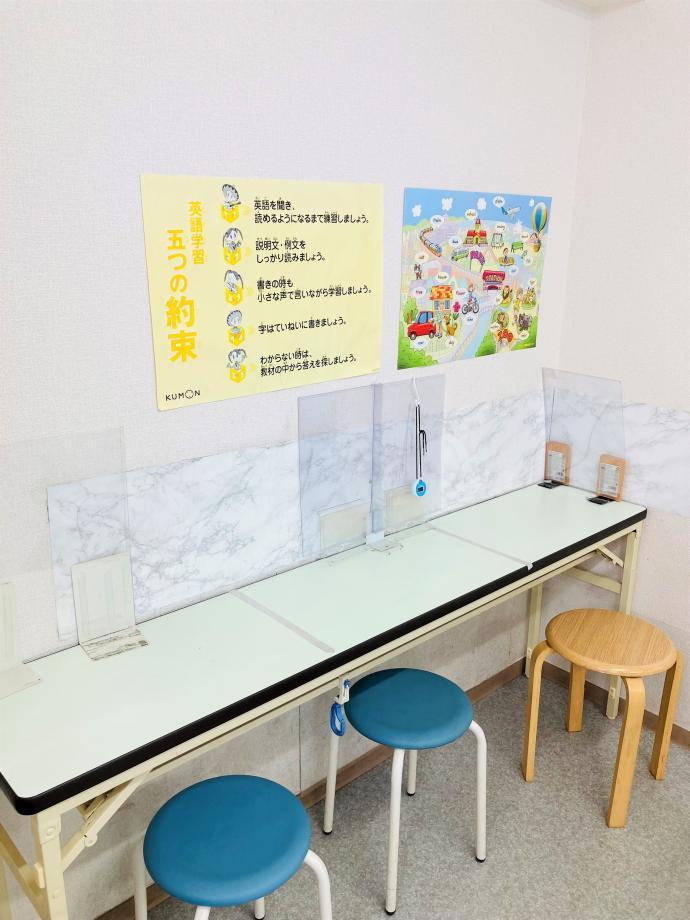 2才から幼児さんが安全に座れるよう幼児用机を設置し、英語学習専用席も設けました。