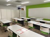 明るくてきれいな教室です。生徒の皆様には間隔を開けて座っていただきます。