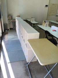 ランドセルや荷物を置く場所。筆記用具だけ持って席へ。