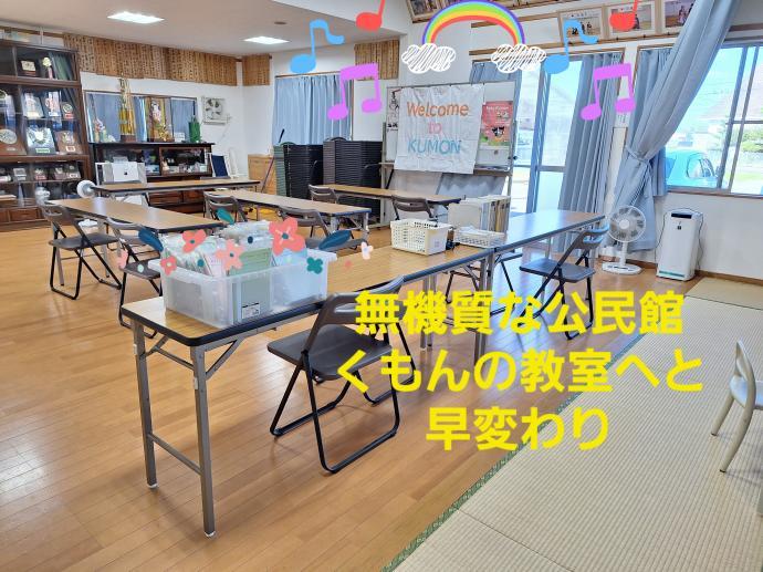 岩戸小学校から徒歩3分。岩戸幼稚園向かいの西隈公民館をお借りしています。西隈公民館は大通りから一本入っているため、「え??こんなところにくもんの教室?」と思われるような目立たない教室です。公民館前と岩戸幼稚園の間には那珂川市役所の広々駐車場があり、路上駐車をすることもなく安心して送迎できます。そして下校後直接教室にくる子には「おかえりー」とご挨拶。お家で過ごすようなアットホームな教室です。